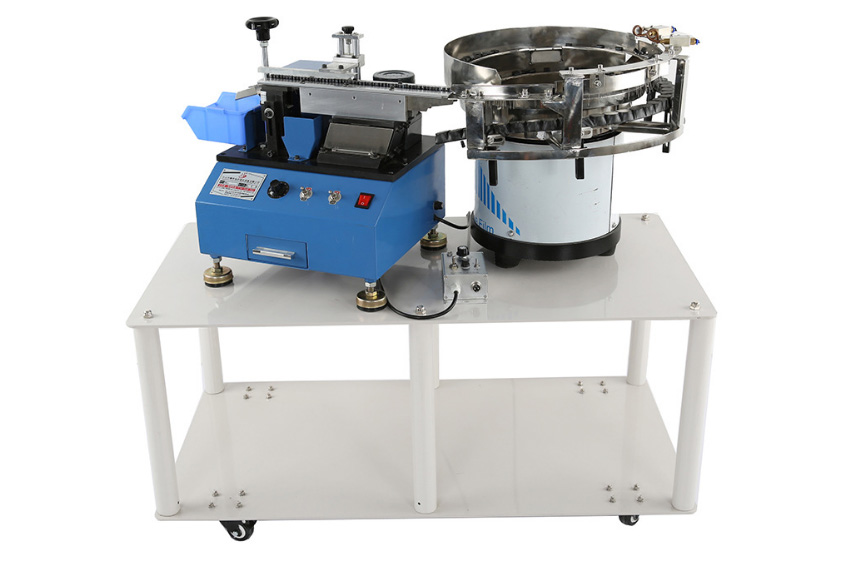 ◆ 此機種加裝可調高軌道的震動盤送料器,震動盤組的輸送軌道可調整寬度以便適用于不同規(guī)格零件之送料,使其適用于生產線對多種規(guī)格需大量剪腳加工的需求。