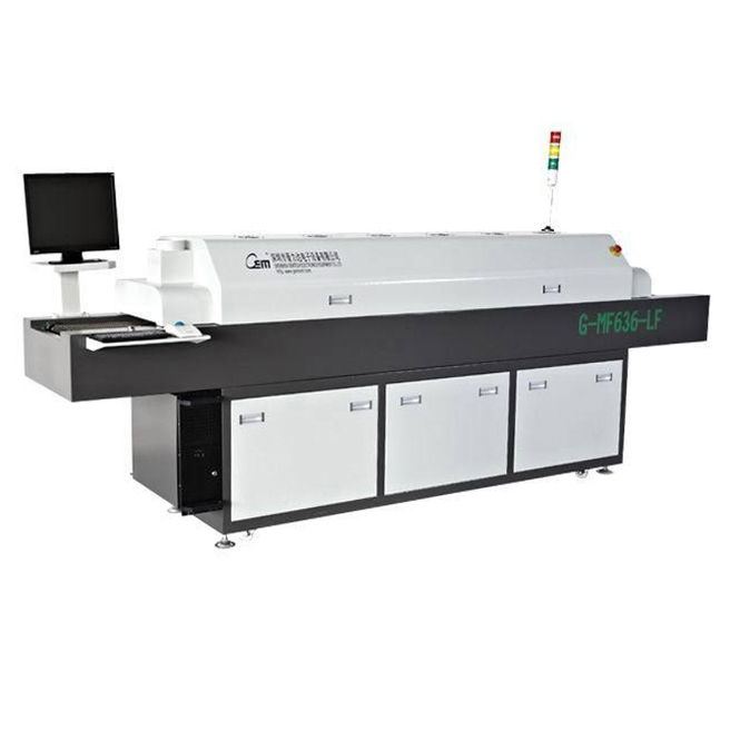 6、工藝自動化:實現(xiàn)全自動精密鉛焊接;整個工藝曲線全部自動控制完成,須人工干預,PCB板靜止放置,振動,可實現(xiàn)微小間距IC的精密焊接,并可完成雙面貼裝焊接工藝。