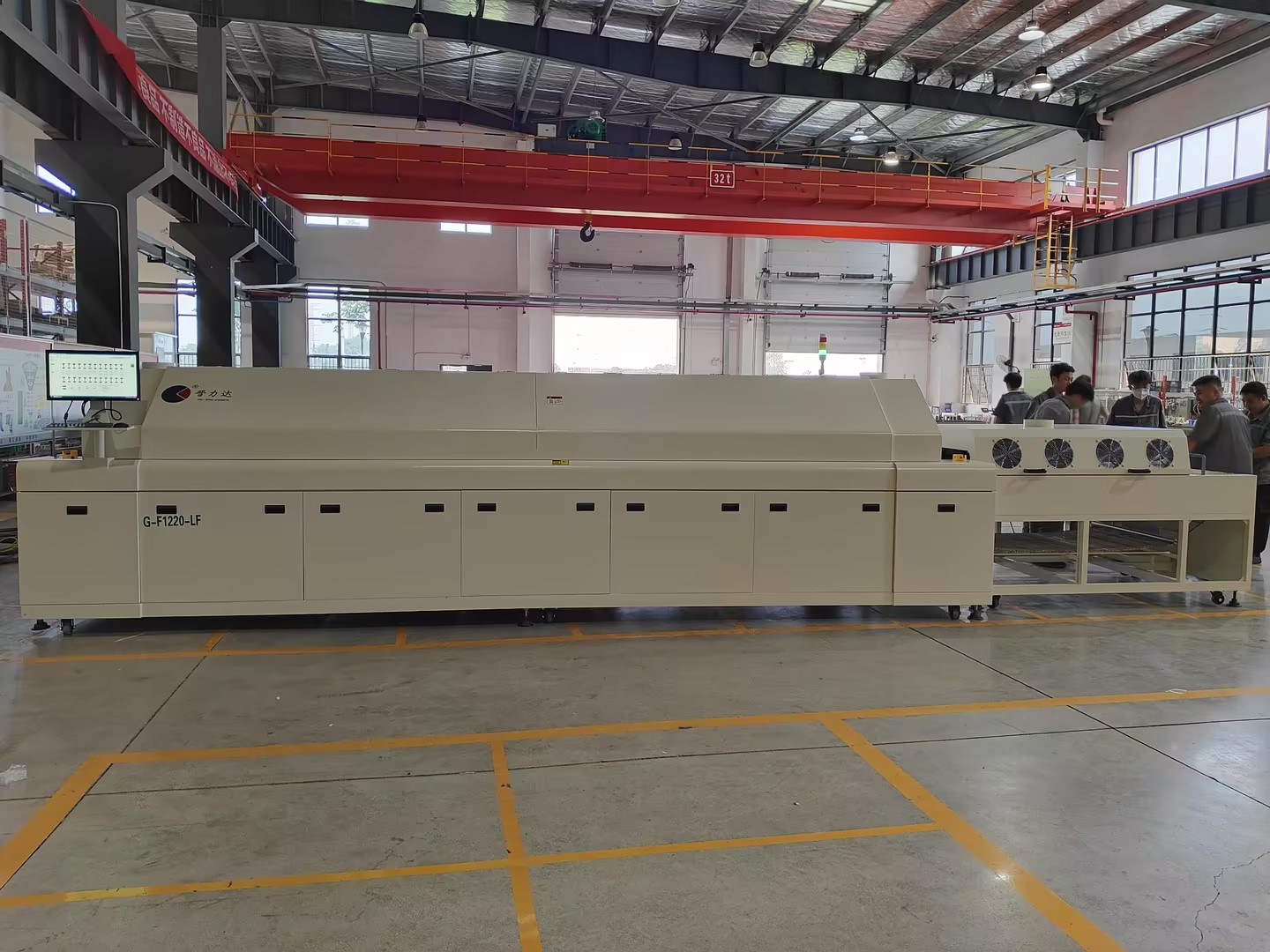 北京維通利電氣有限公司分公司株洲維通利電氣有限公司在2023年8月7號 采購我司晉力達大型環保全熱風全電腦 控制12溫區回流焊G-F1220-LF 全熱風/網帶+電腦+6段冷卻900MM寬網帶,網帶以上內空高度100MM,方向左進右出,加通過式全自動清洗機(兩段泵浦噴淋+風機 風刀+熱風烘干,網帶寬900MM,用于疊層母排回流焊。