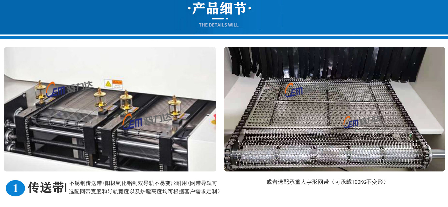 3.專用不銹鋼乙字網帶,耐用耐磨。長時間使用不輕易變形